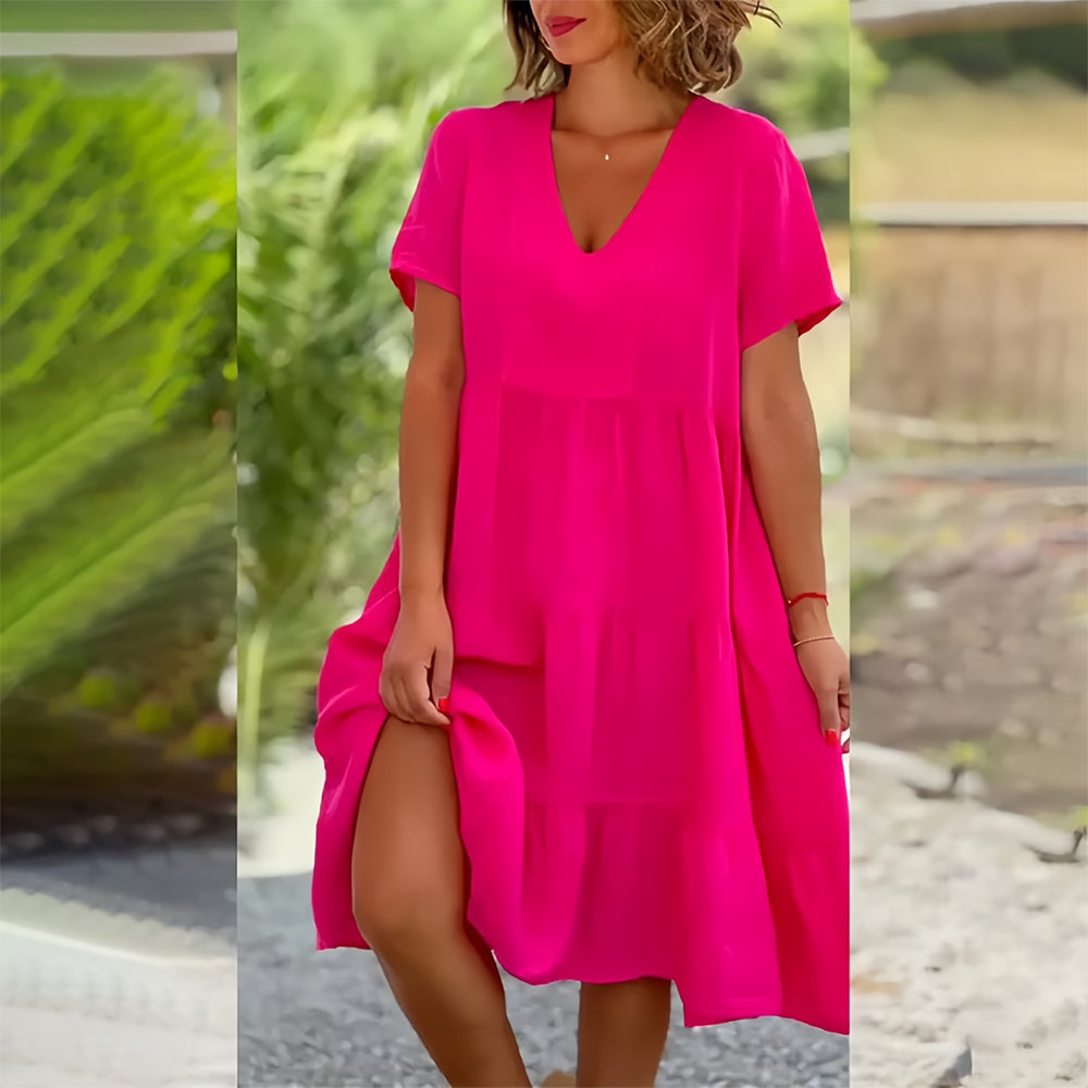 • 1 x V-Ausschnitt Einfarbiges Kleid