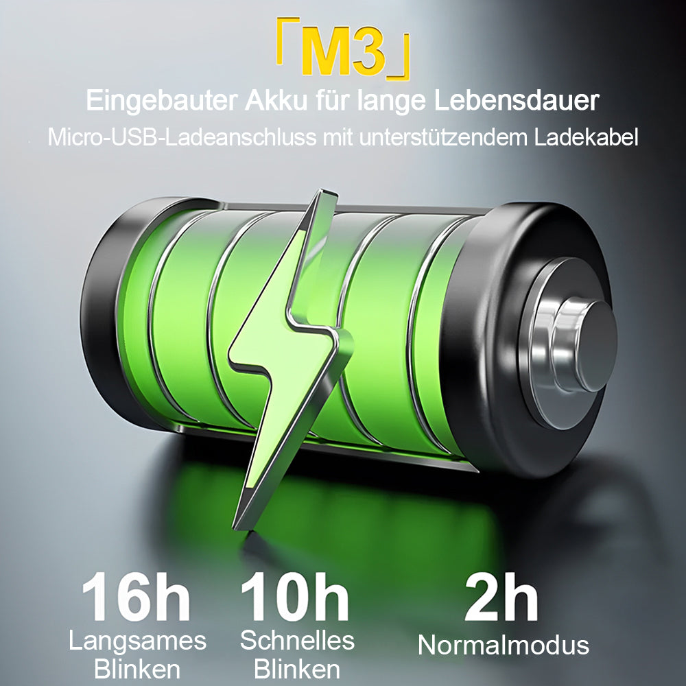 - Nutzungsdauer:ca. 3,5 Stunden im Blinkmodus