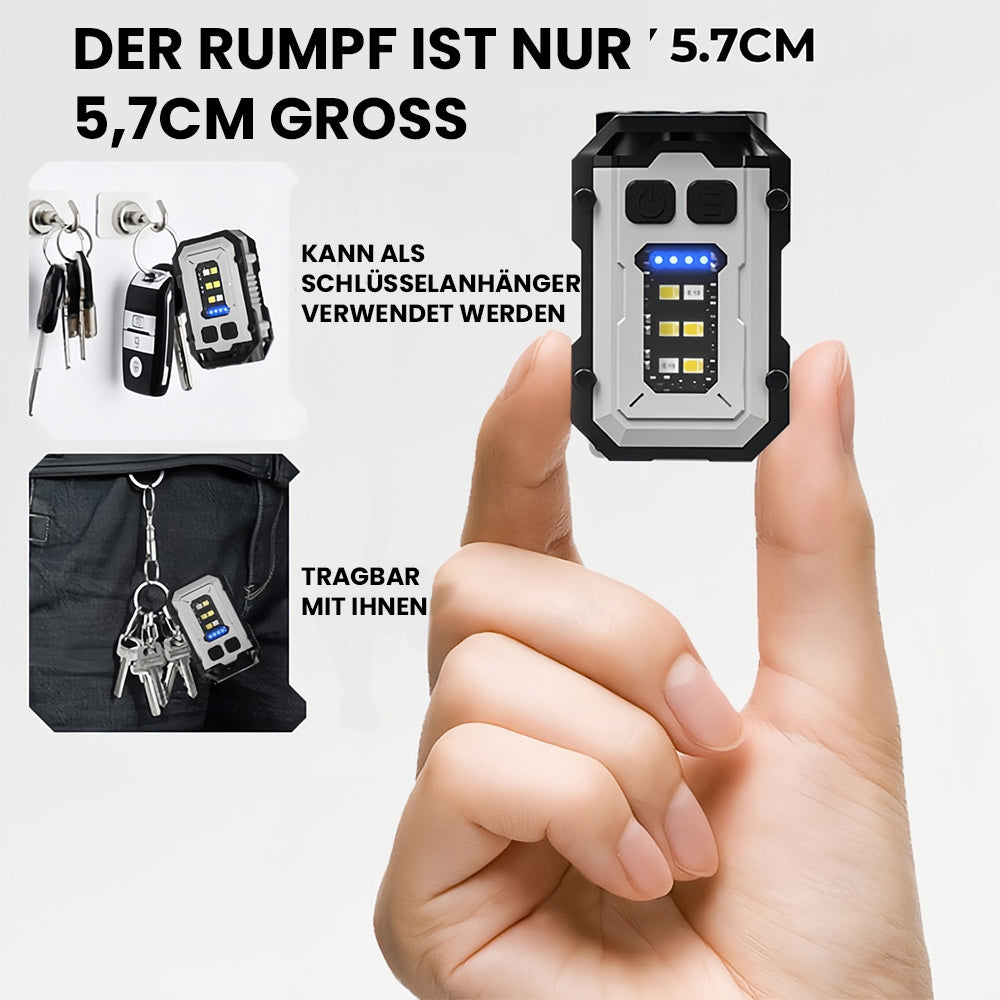 - ⚡[Langlebig & haltbar] Die wasserdichte IPX5-Blitzleuchte besteht aus Aluminiumlegierung und PC-Materialien, ist robust und langlebig, misst 5,7 x 3,7 cm und wird mit einem Schlüsselanhänger geliefert, der an Ihrer Tasche oder Hose befestigt werden kann.