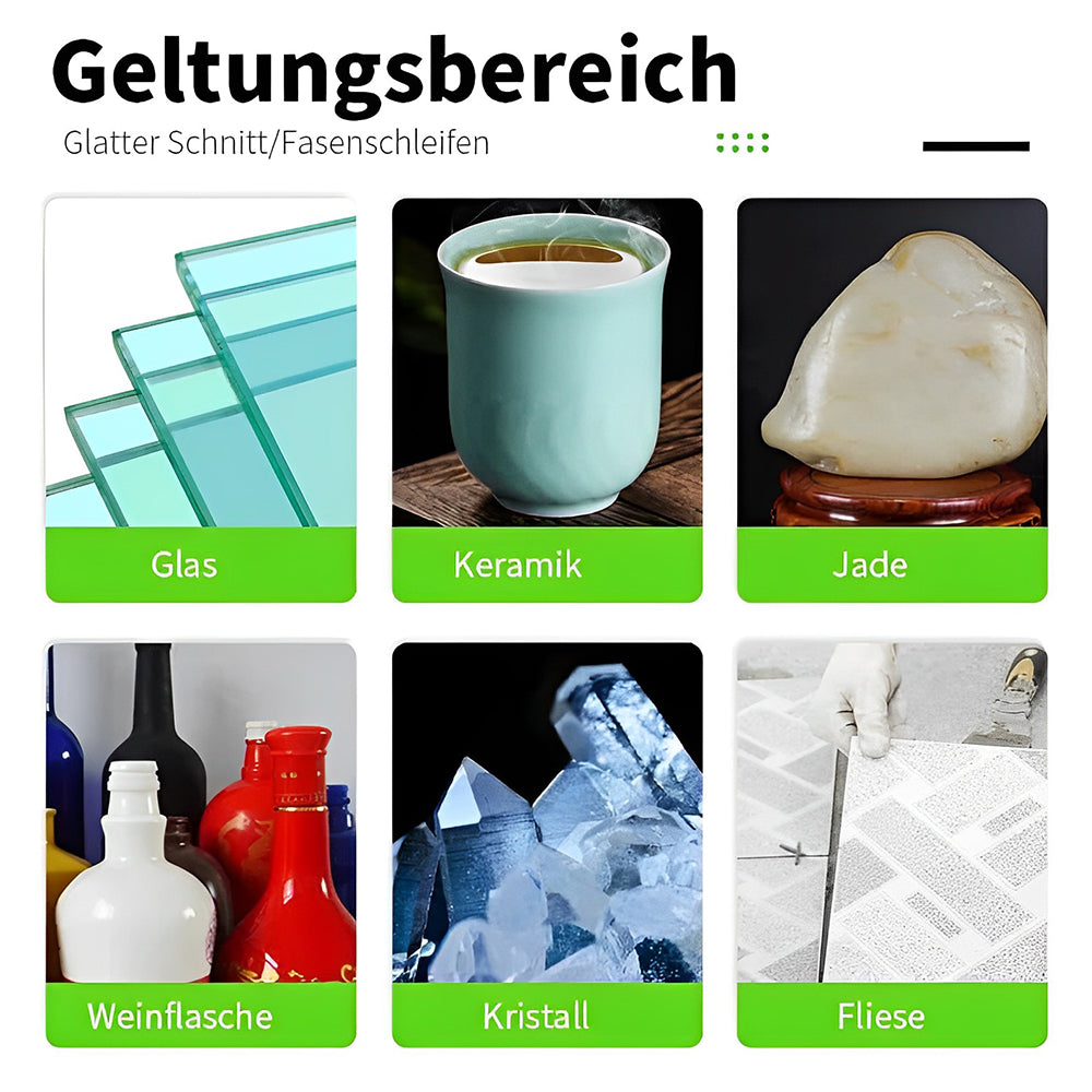 Geltungsbereich: Es eignet sich zum glatten Schneiden und Schleifen von Glas, Jade, Kristall, Weinflaschen, Keramik, Keramikfliesen und anderen Materialien.