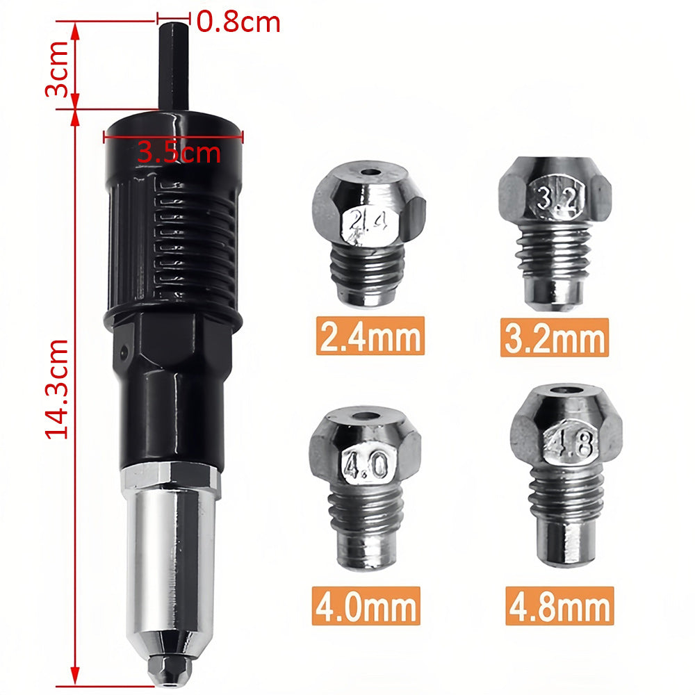 💥Professionelles Nietpistolen-Adapter-Kit mit 4 Stück verschiedenen, passenden Düsenbolzen