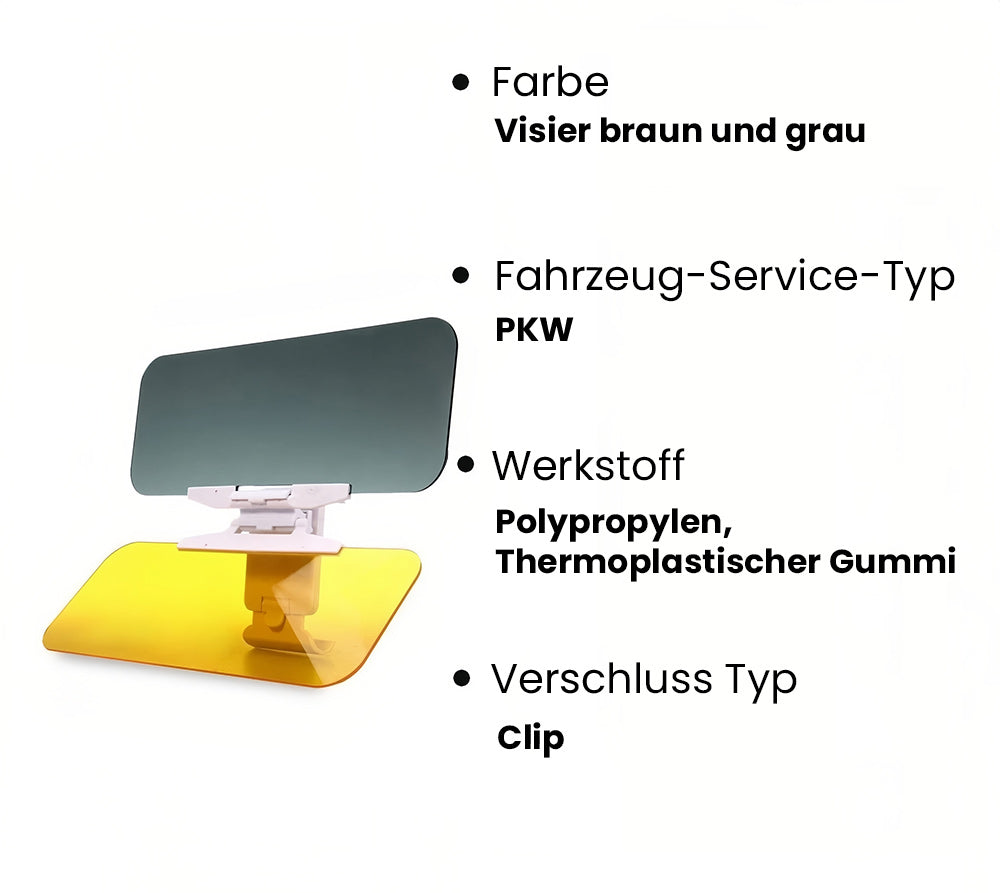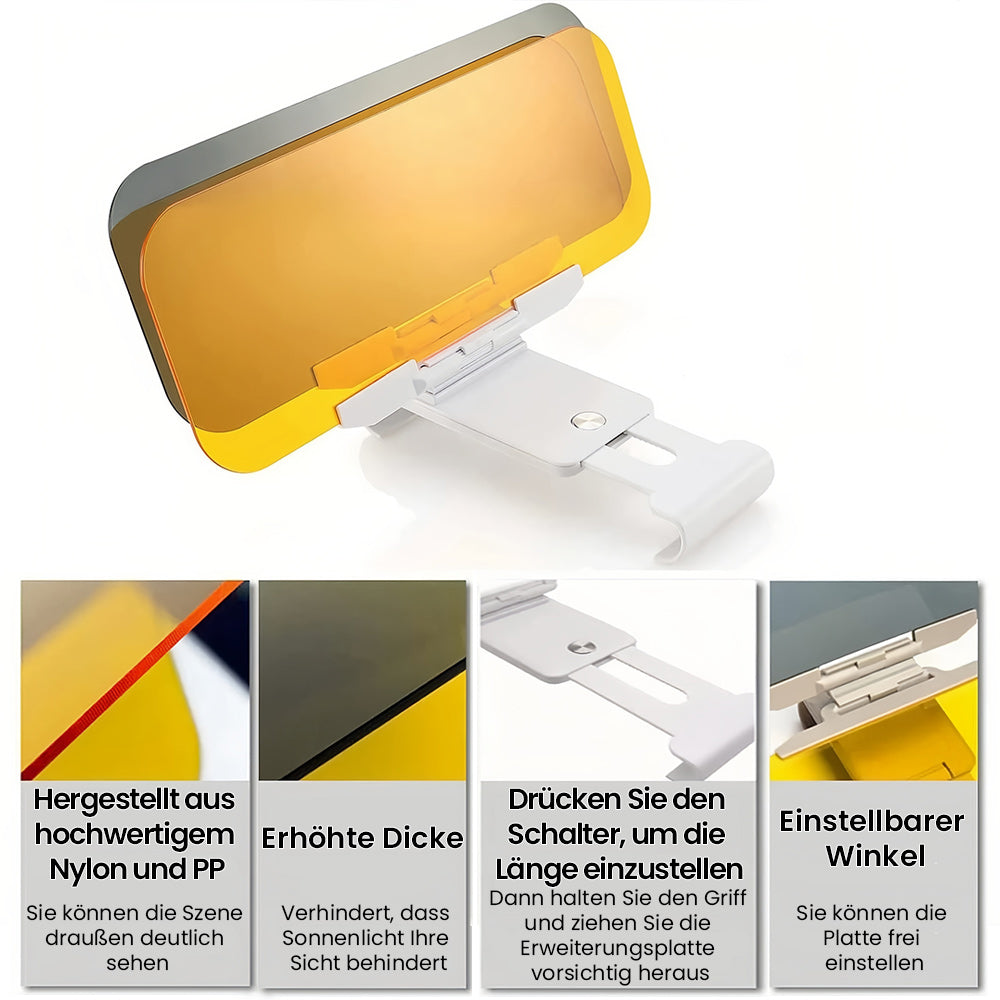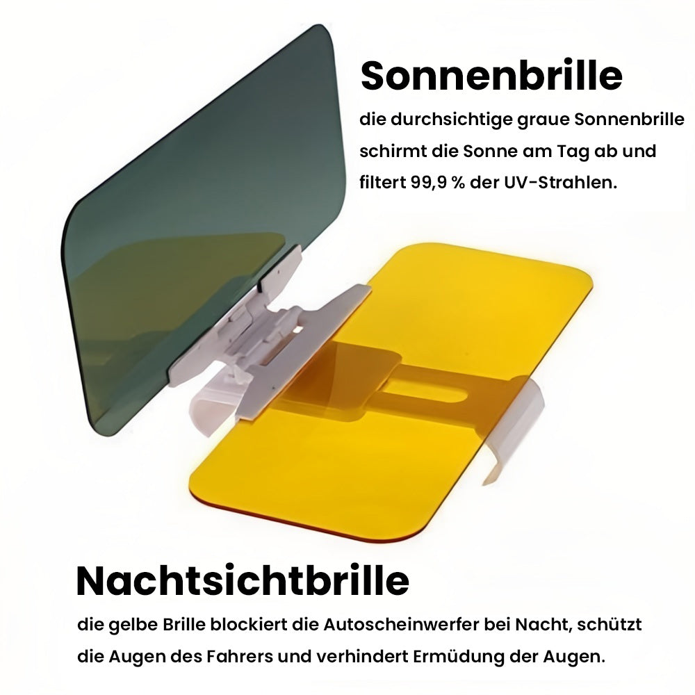 - 🚘Doppelter Zweck - Dieses Produkt ist die beste Sonnenblende für Autofahrer, die Tag und Nacht auf der Straße unterwegs sind. Es ist für 2 Zwecke konzipiert. Der graue Teil der Sonnenblende ist für das Fahren am Tag geeignet und filtert 90% der UV-Strahlen. Die gelbe Seite blockiert die Autoscheinwerfer bei Nacht und verhindert so die Ermüdung der Augen.
