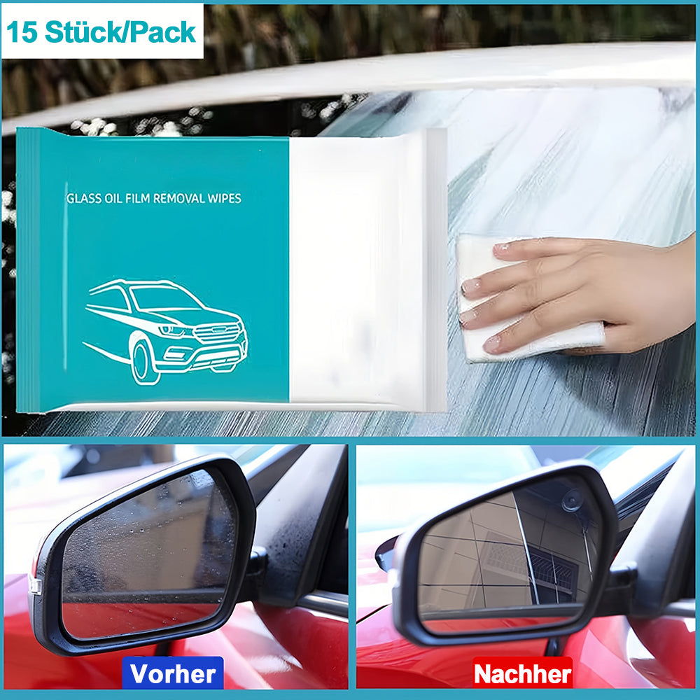1 x Tücher zur Entfernung von Ölfilmen auf Autoglas (15 Stück/Pack)
