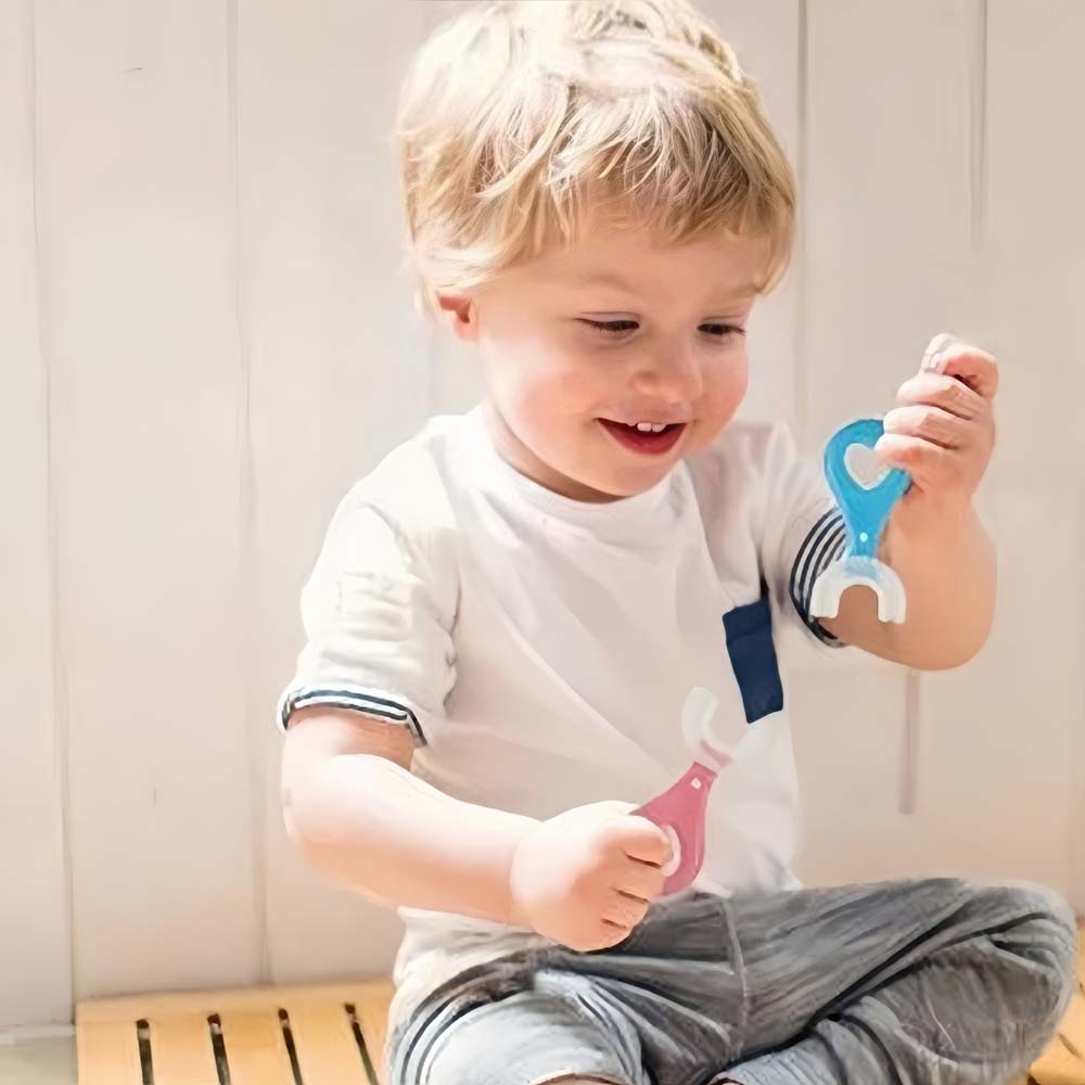 - 【Kreatives U-förmiges Design】: Ergonomischer U-förmiger Bürstenkopf, geeignet für die Form und Mechanik der Kinderzahnstruktur. einzigartig für das zarte Zahnfleisch und die empfindlichen Zähne der Kinder.