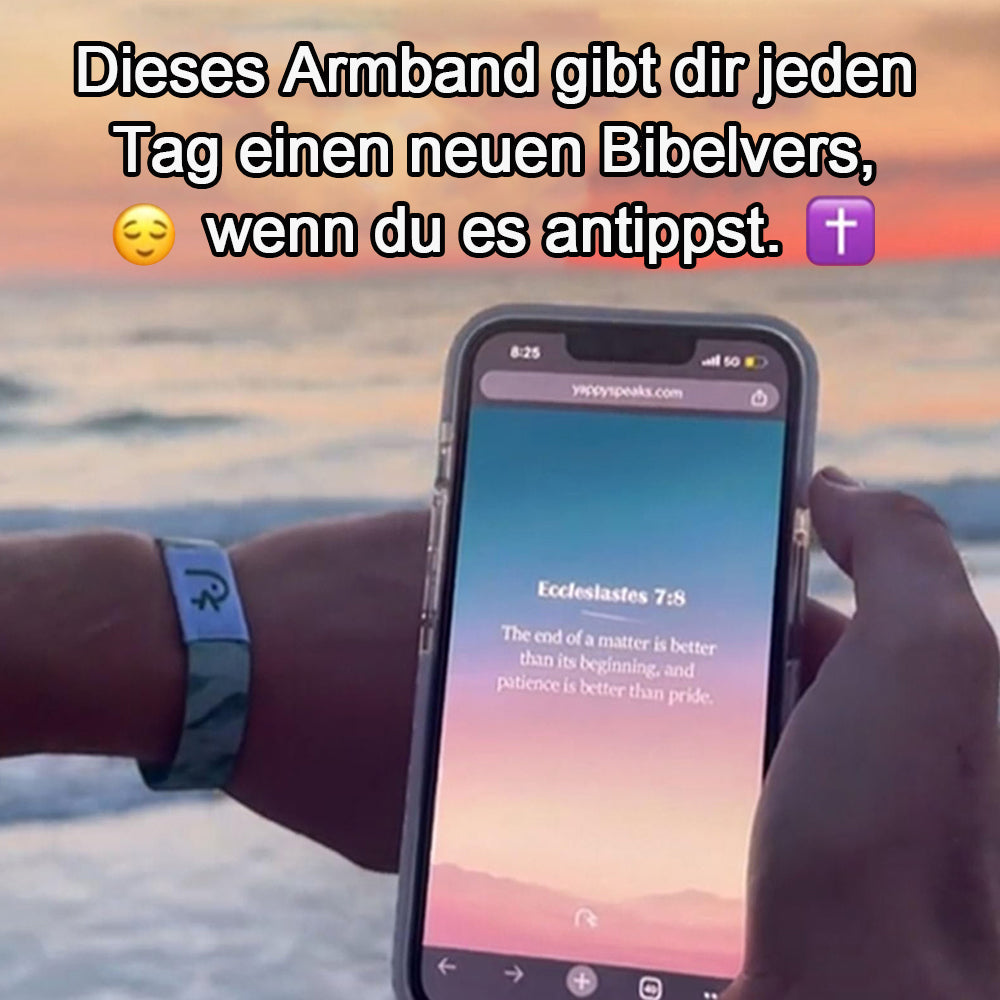 Dies ist mehr als ein einfaches Armband. Mit einem einfachen Fingertipp auf dein Handy erhältst du einen Bibelvers des Tages, der nur für dich bestimmt ist. Unsere Kollektion von durchdachten Armbändern ist nicht nur stilvoll, sondern spricht auch wirklich.