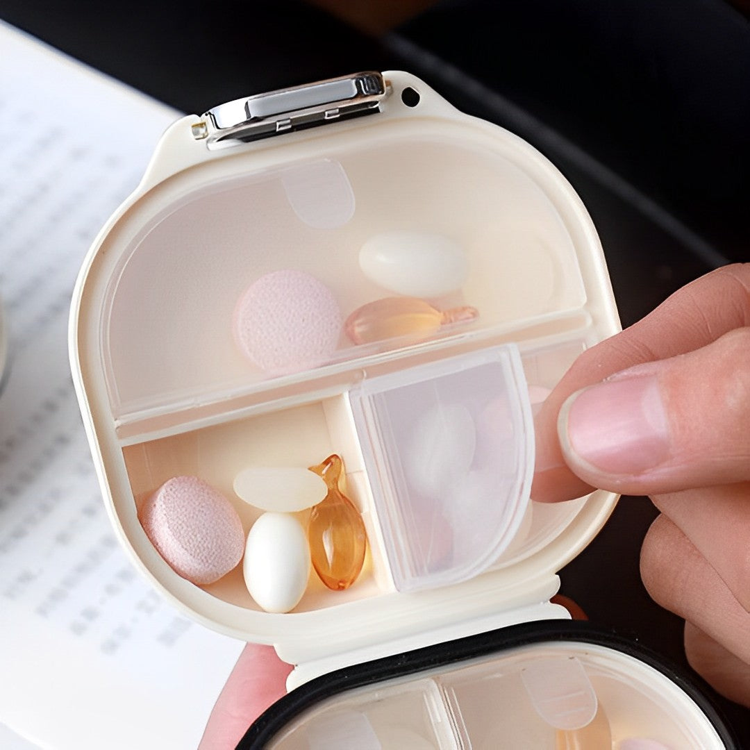 Tragbar und kompakt:Die Pillenbox ist tragbar und winzig. Daher ist sie geeignet für den täglichen Gebrauch, für Gebrauch auf Reisen oder für Aufbewahren in einer Tasche.