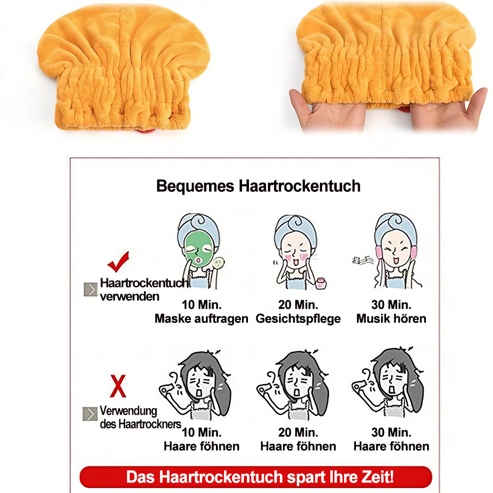 Dieser Haarturban kann Ihr nasses Haar nach dem Baden einwickeln und trocknen. Er kann den Hitzeschaden durch den Föhn stark reduzieren und Ihr Haar glatter und glänzender machen.