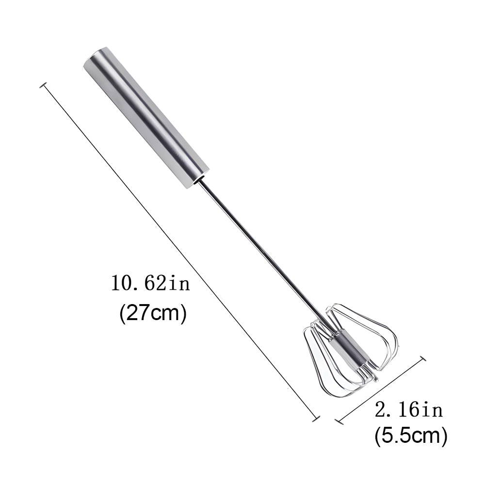 Spart Mühe und erledigt die Arbeit viel schneller als ein gewöhnlicher Schneebesen. Keine Elektrizität oder Batterie erforderlich. Drücken Sie einfach den Griff nach unten und die Schneebesenklingen aus rostfreiem Stahl drehen sich.