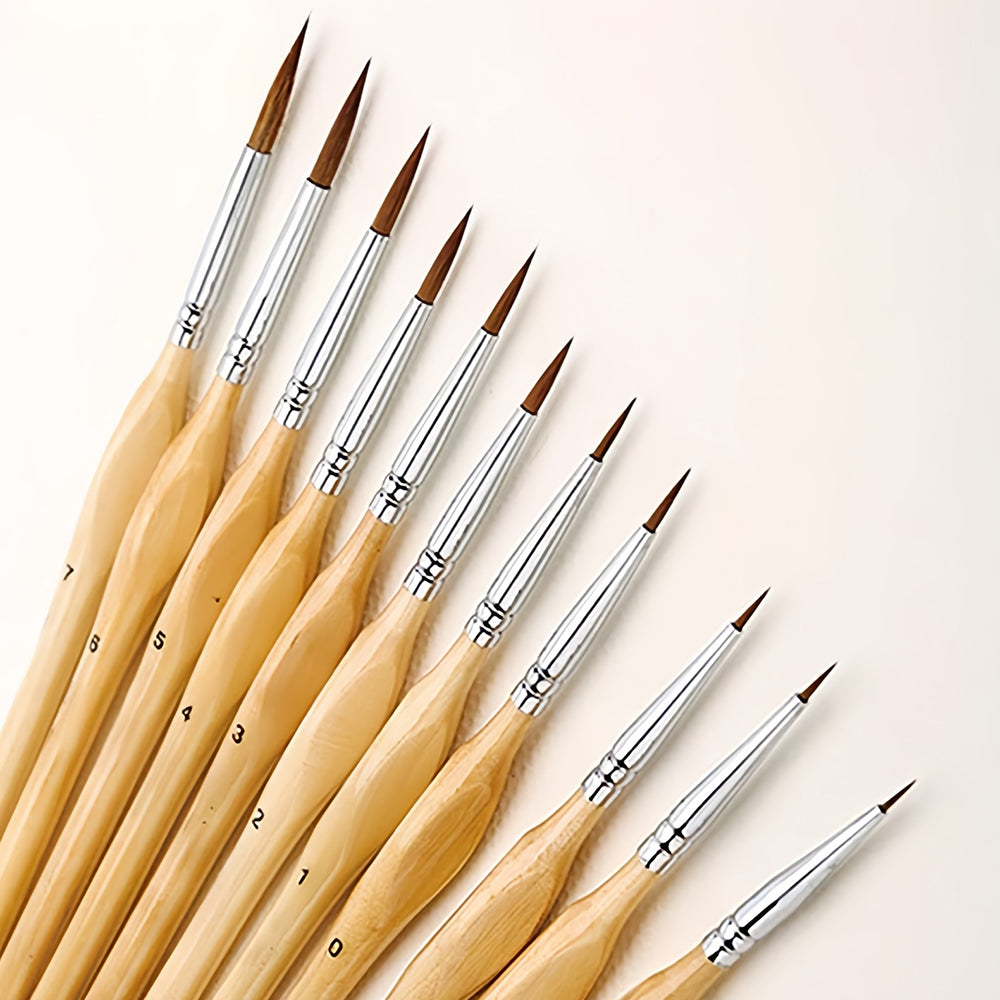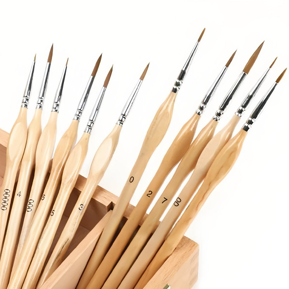 11 Stück Miniatur-Detail-Pinselset mit Naturholzgriff