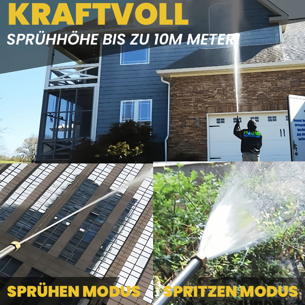Freihändiges Umschalten zwischen 2 Düsen (Hochstrahl-/Fächermodus) für unterschiedliche Zwecke - Strahldüse für kraftvolle, konzentrierte Reinigung; Fächerdüse für sanftes Waschen und Sprühen mit großer Reichweite.