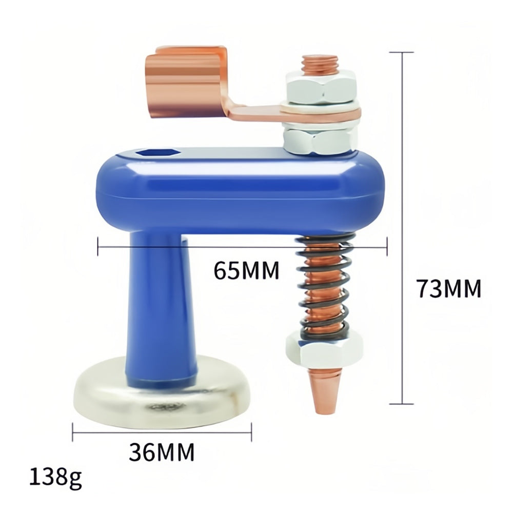 - Sie müssen Ihre Zeit nicht mehr damit verschwenden, einen Erdungspunkt für eine Schweißarbeit zu finden, anzubringen oder zu entfernen. Dieses Gerät dient als Erdungspunkt, den Sie überallhin mitnehmen können. Befestigen Sie ihn einfach an einer geeigneten Stelle, schließen Sie Ihren Sicherheitsdraht an, und schon können Sie schweißen.