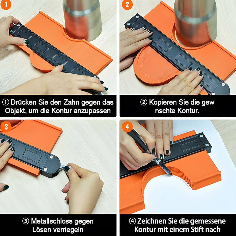 - 🔼【Präzise die Form kopieren und Zeit sparen】Die Bedienung ist einfach mit doppelten Linealen auf beiden Seiten.Zuerst stempeln Sie die Lehre auf die Form, ziehen Sie eine Linie entlang der Form und schneiden Sie die Spur aus.Manuelle Aufgaben wie DIY, Schreinerei und Renovierungen sind einfach.