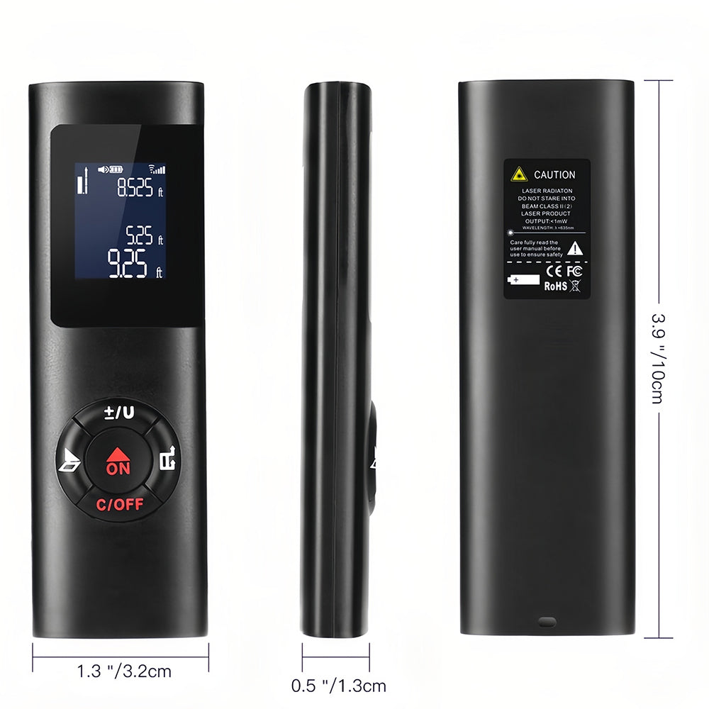 HOHE GENAUIGKEIT -- Mit Laser-Präzisionstechnologie, Genauigkeit bis zu ±0,0015m, Messabstand erstreckt sich auf 131ft; Umschaltbar auf m/in/ft.