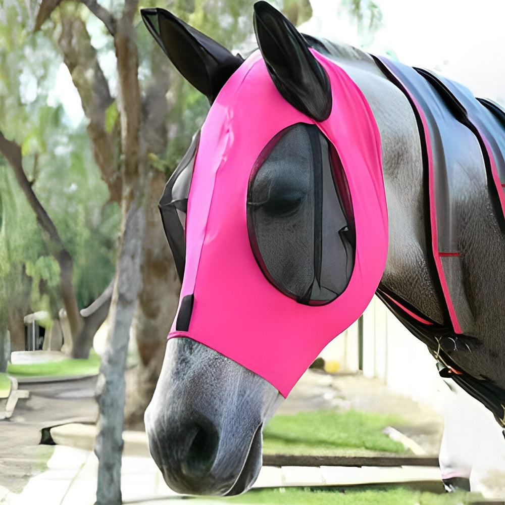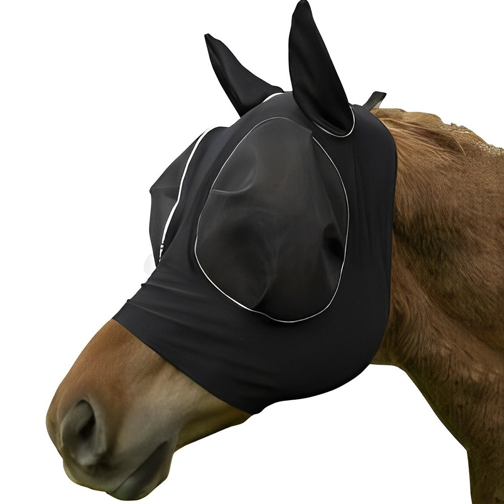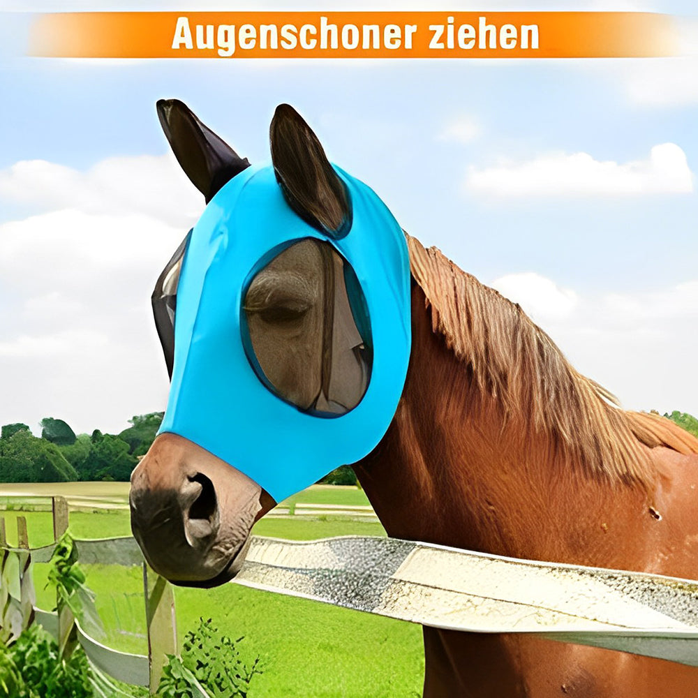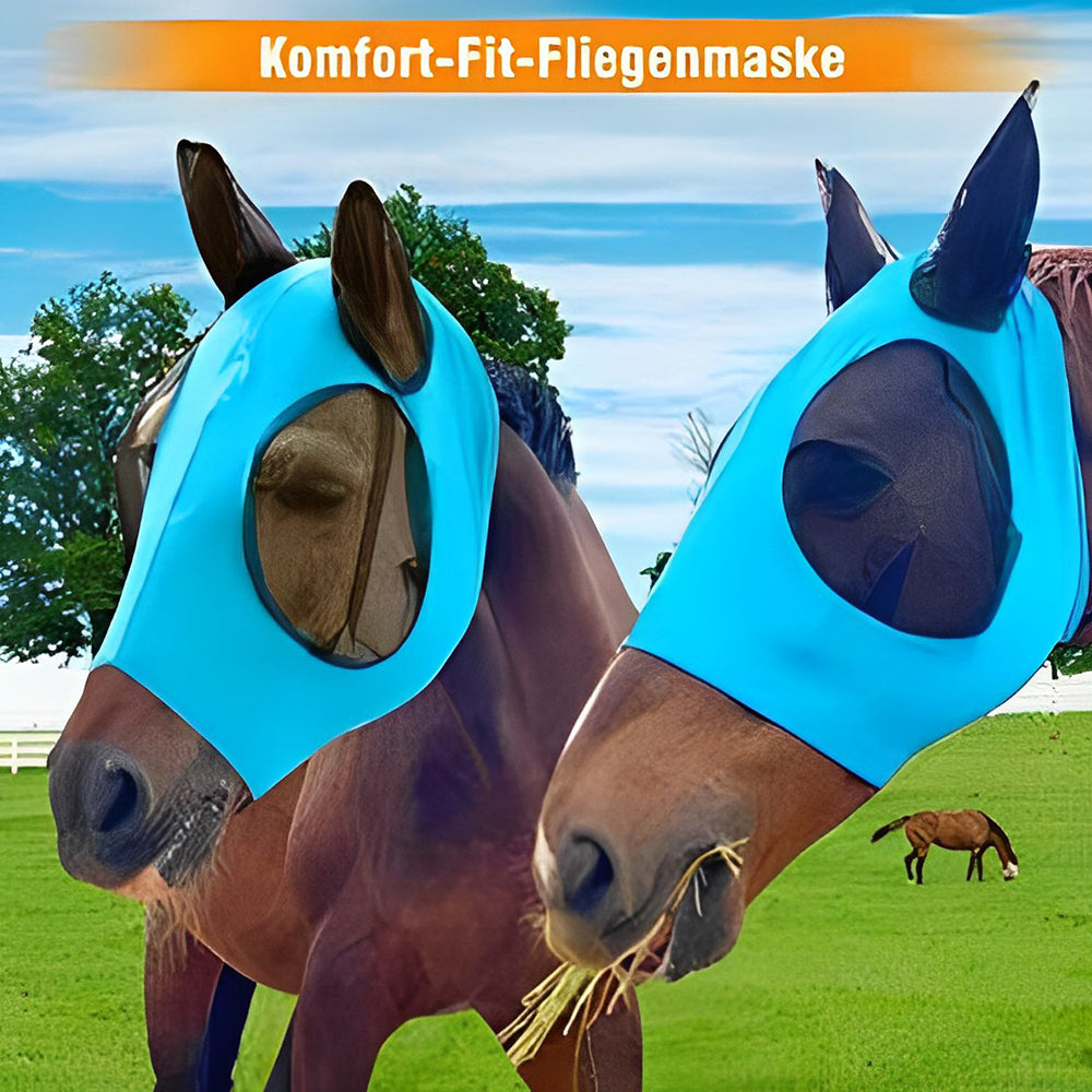 SPEZIFIKATIONEN: Geeignet für Pferde mit einem Halsumfang von bis zu 100 cm (vor dem Kauf prüfen). Die einteilige Maske hat keine Haken oder Schlaufenverschlüsse und ist einfach zu montieren. Passt sich bequem dem Gesicht Ihres Pferdes an.