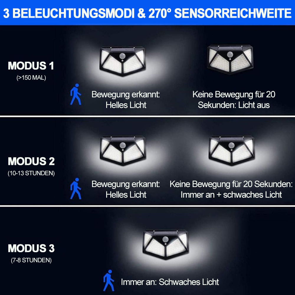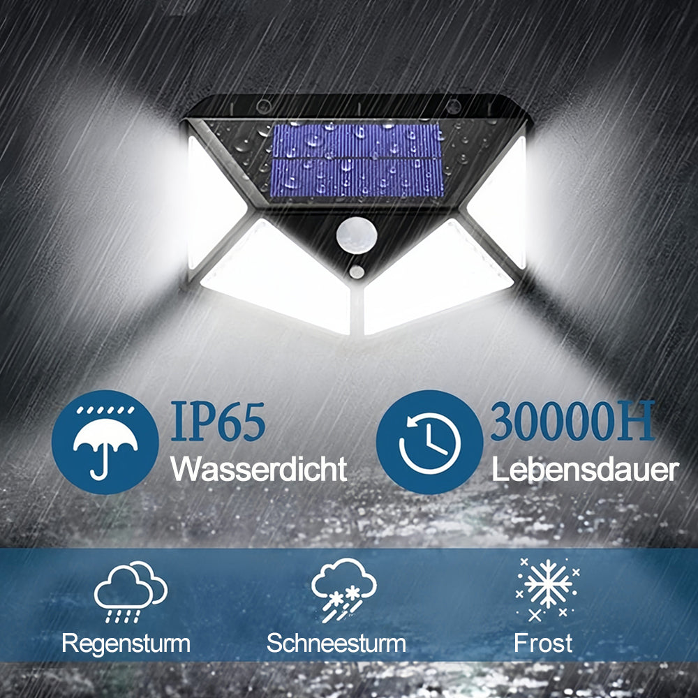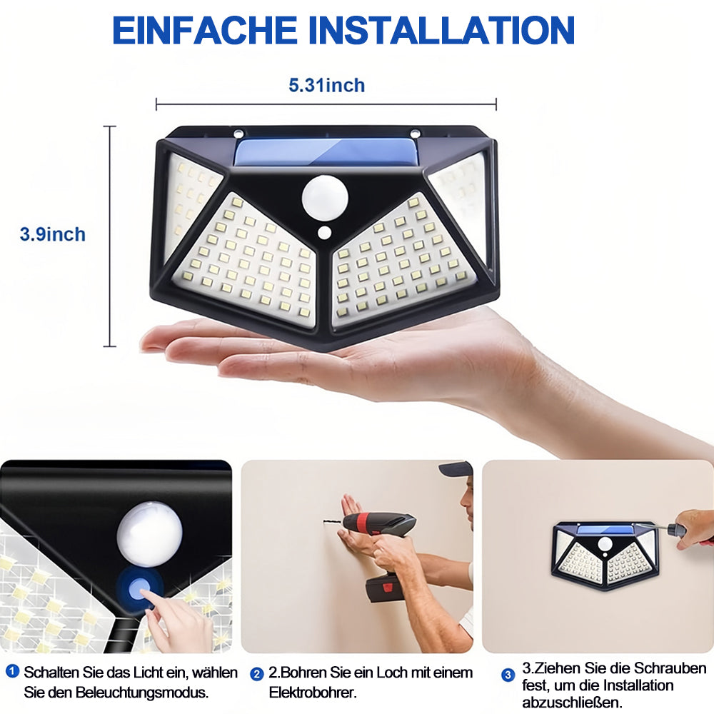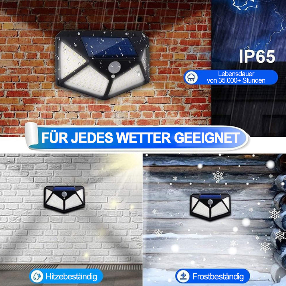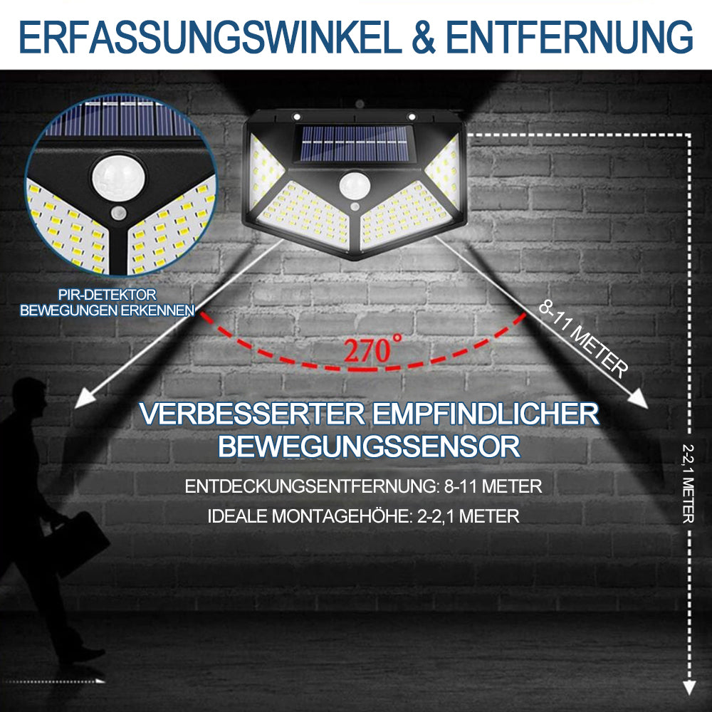 Effiziente solarbetriebene Beleuchtung: Unser Solar-Bewegungssensor-Licht nutzt die Kraft der Sonne, um helle und energieeffiziente Beleuchtung zu bieten. Mit 100 oder 180 LEDs in kaltweißem Licht erleben Sie klare Beleuchtung, die die Sichtbarkeit rund um Ihr Grundstück verbessert.