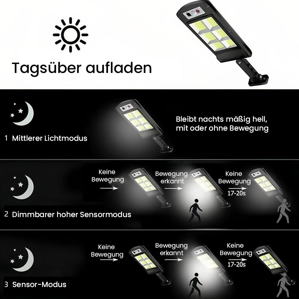 - Schnelles Aufladen: Das Aufladen des Solarpanels hängt von der Dauer des Lichts und den Wetterbedingungen ab. Je stärker die Sonne, desto kürzer die Ladezeit. An bewölkten oder regnerischen Tagen ist die Effizienz der Batterie geringer, was zu kürzeren Beleuchtungszeiten führt.