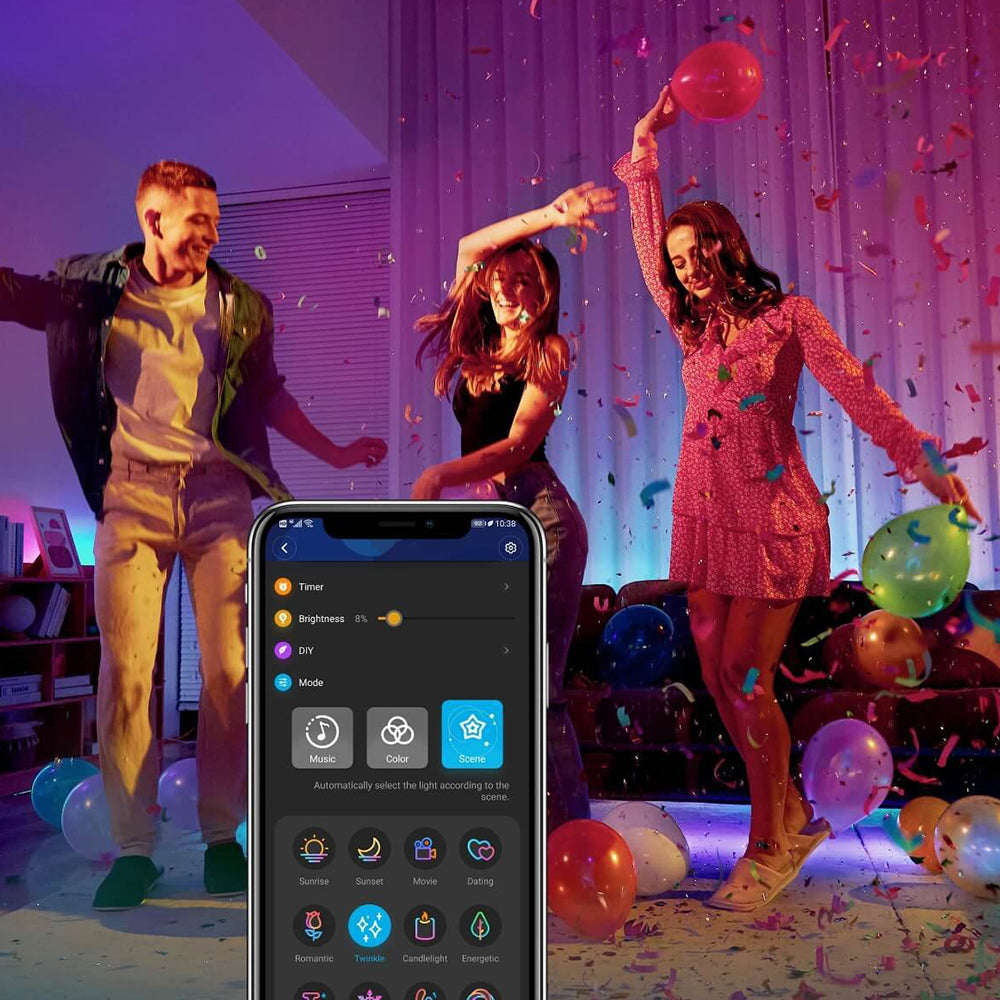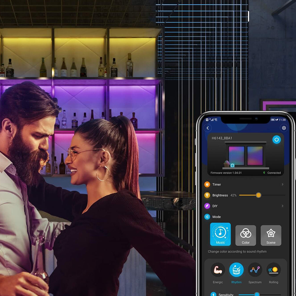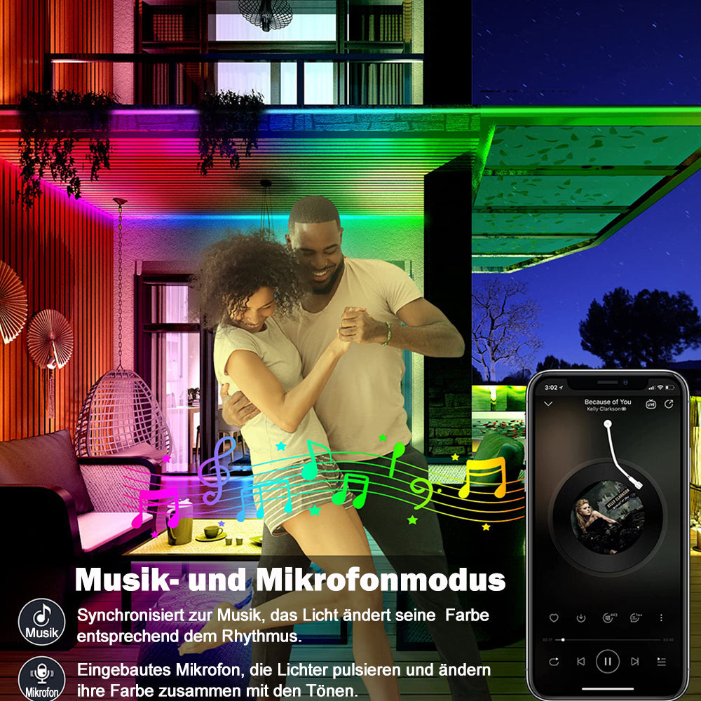 Mehrere App-Funktionen: Mit der App können Sie Ihren Lichtstreifen vollständig personalisieren. Wählen Sie aus 16+ Millionen Farboptionen und synchronisieren Sie die Lichter mit Ihrem Lieblingsaudio mit Musikmodus.