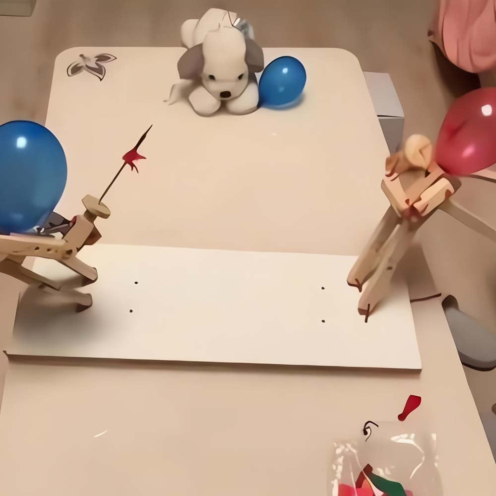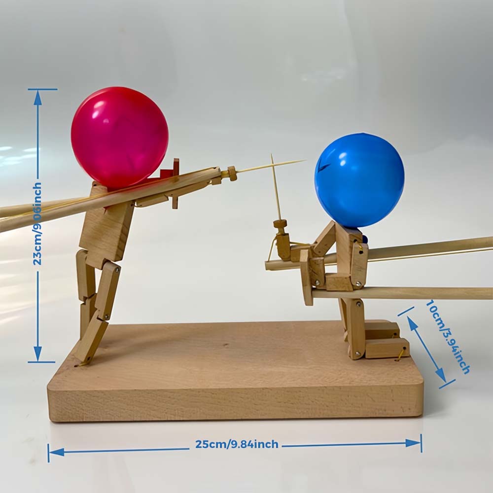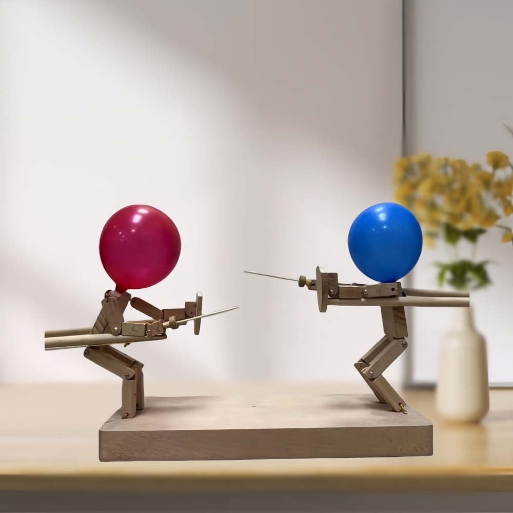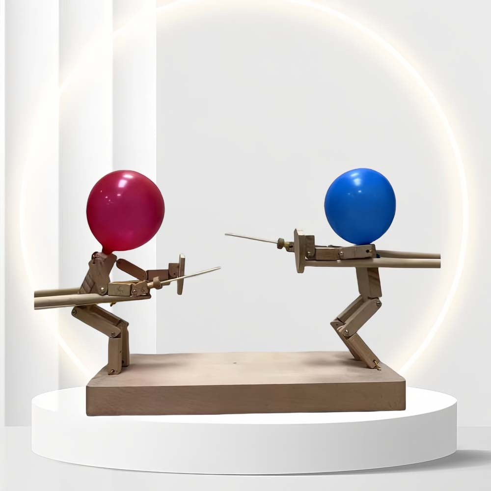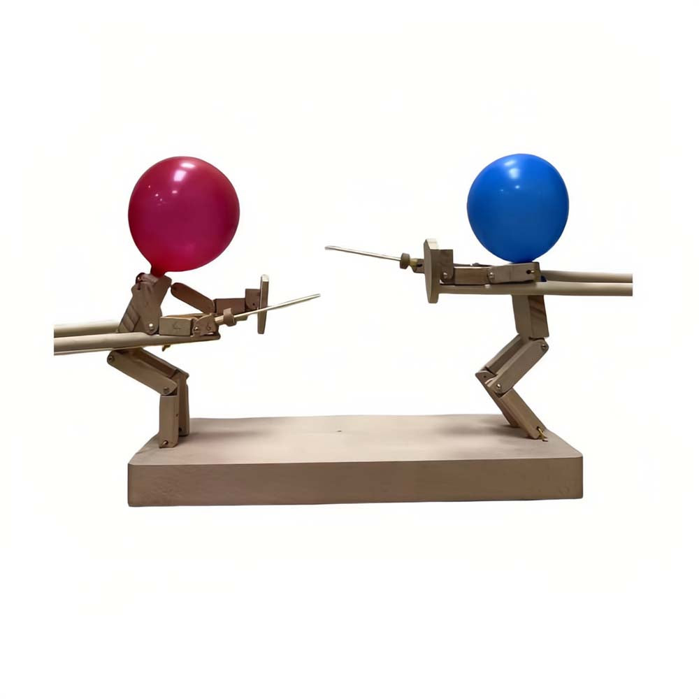 Hölzerne Fechtpuppen- ein innovatives und rasantes Kampfspiel mit hölzernen Bots, das für zwei Spieler konzipiert ist. Erlebe spannende Duelle mit handgefertigten, aufwändig gestalteten Fechtpuppen aus Holz, die einen adrenalingeladenen Ballonkampf wie keinen anderen versprechen.