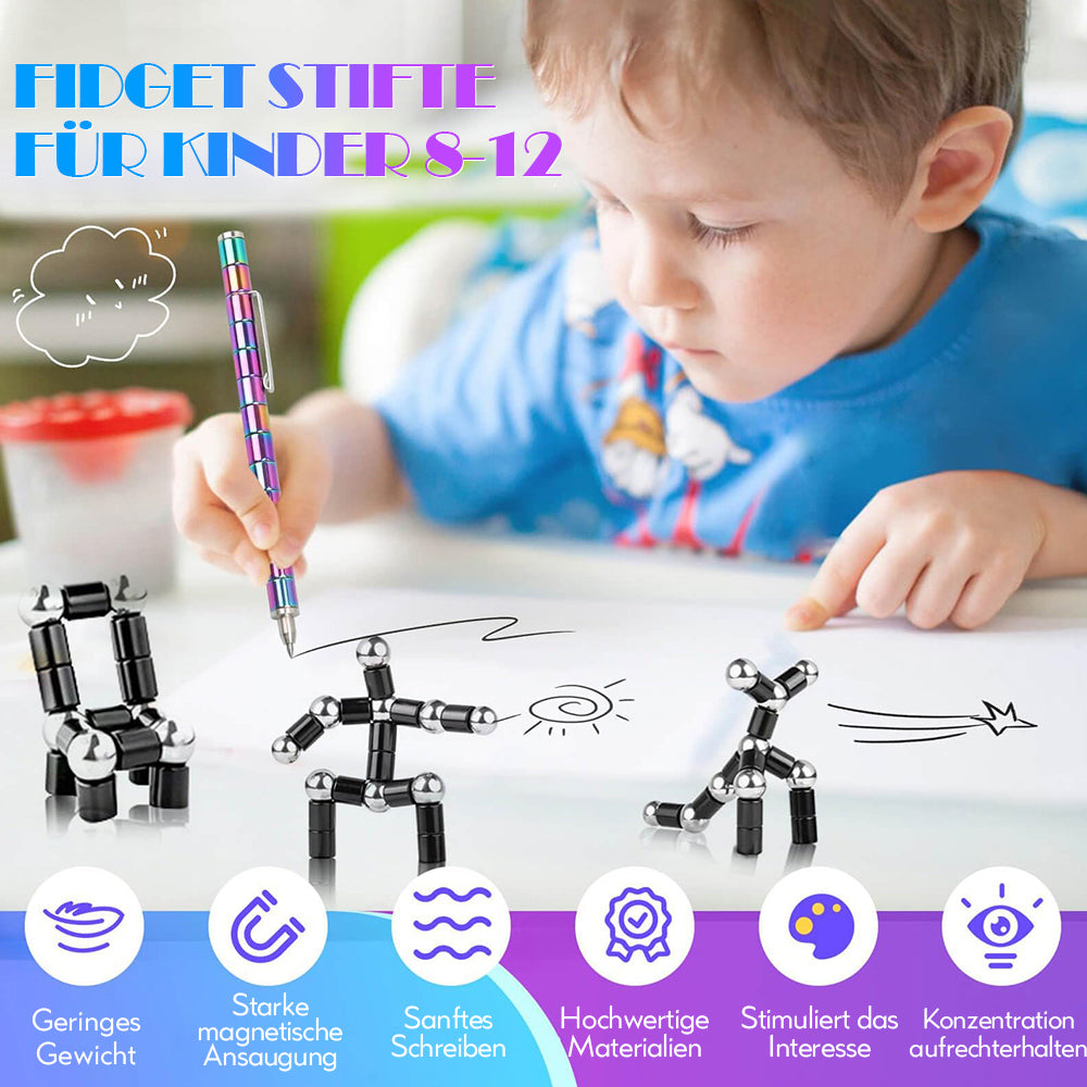 - 💝【Langlebiges Material】Unser magnetischer Fidget-Stift ist aus hochwertigen Materialien hergestellt, die allen Arten von imaginären Verformungen standhalten können und nicht auseinanderfallen. Er hat einen reibungslosen Tintenfluss und hochwertige Minen, was ihn zu einem zuverlässigen Werkzeug für das Lernen und die Unterhaltung macht.