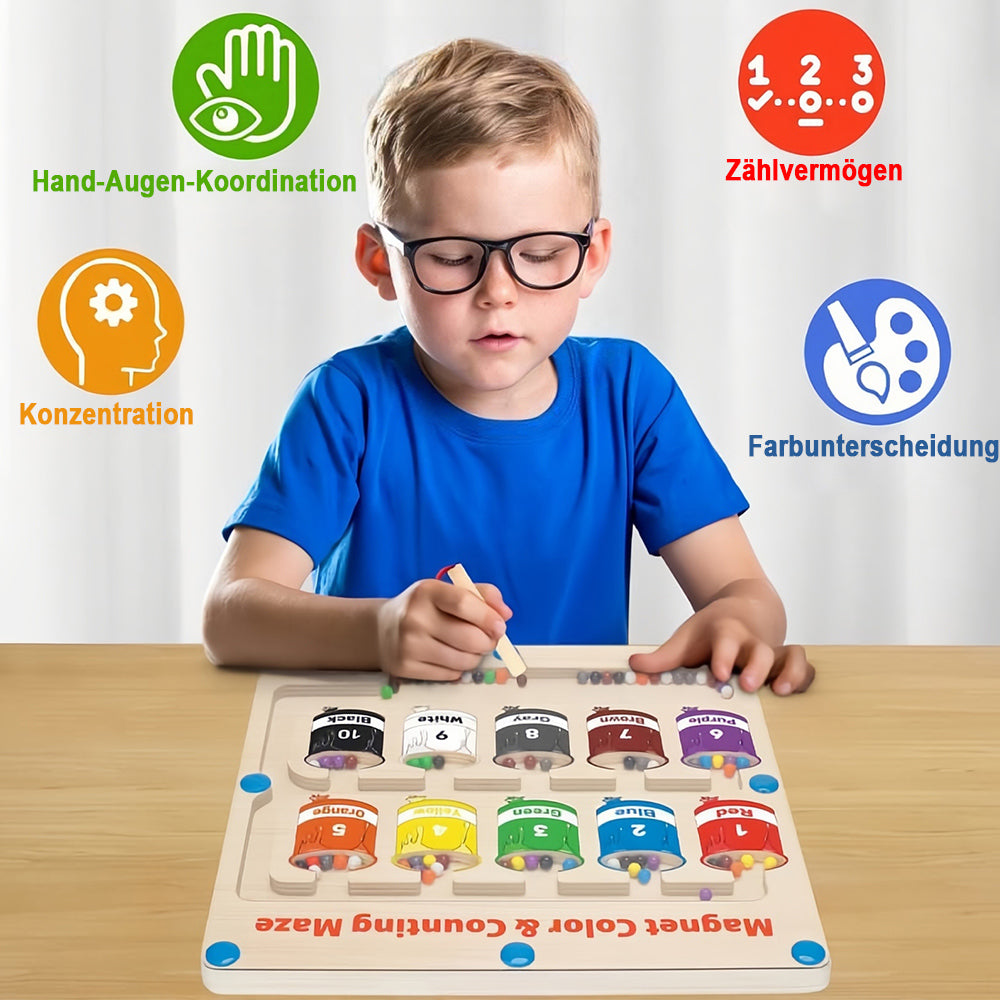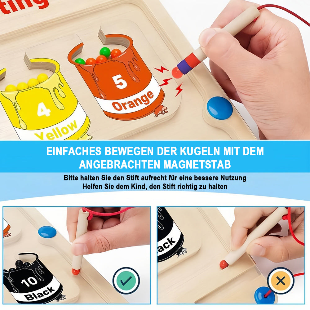 Montessori-Spielzeug für Kinder ab 1 Jahr: Mit dem magnetischen Farblabyrinth können Kinder beim Spielen Zählen, Farberkennung, Hand-Augen-Koordination und Feinmotorik üben.