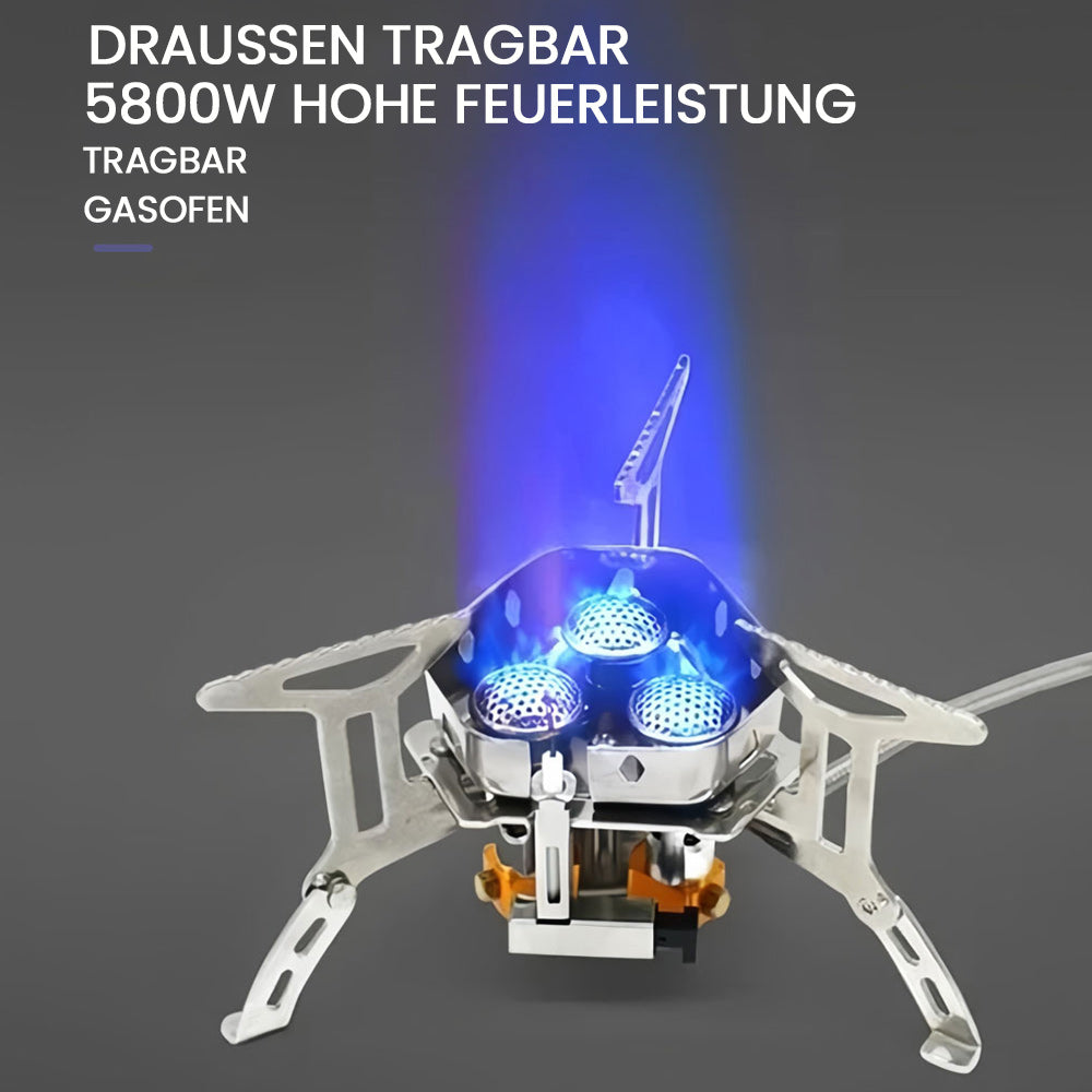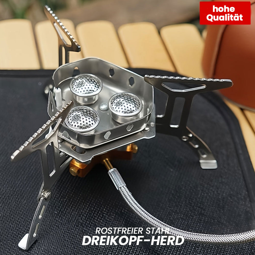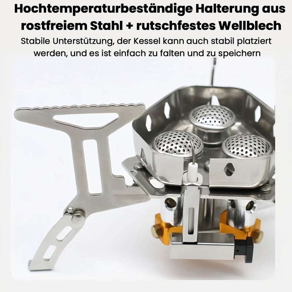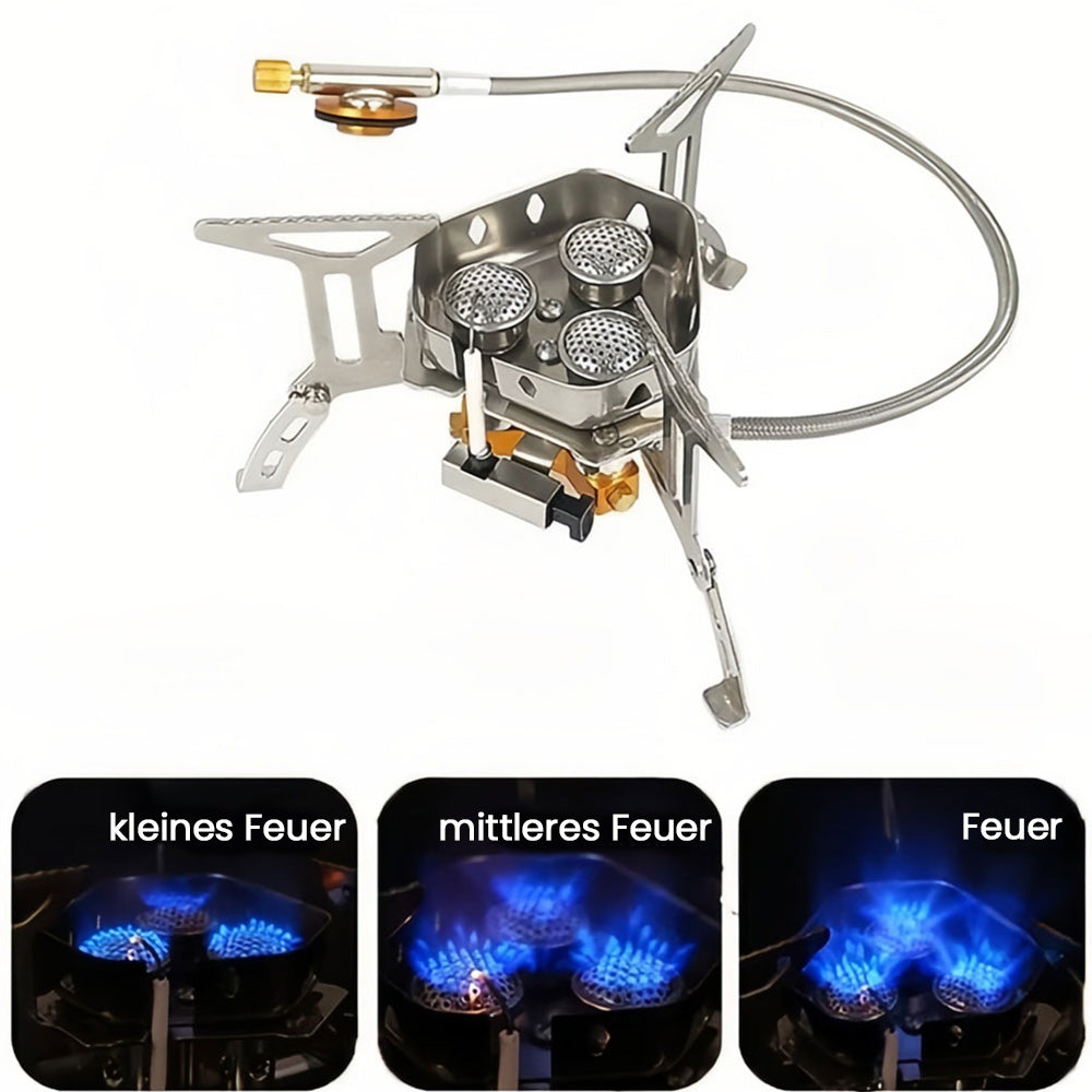 - 3 Brenner bieten 5800W starke Feuerleistung, kochen 1L Wasser in nur 3 Minuten.