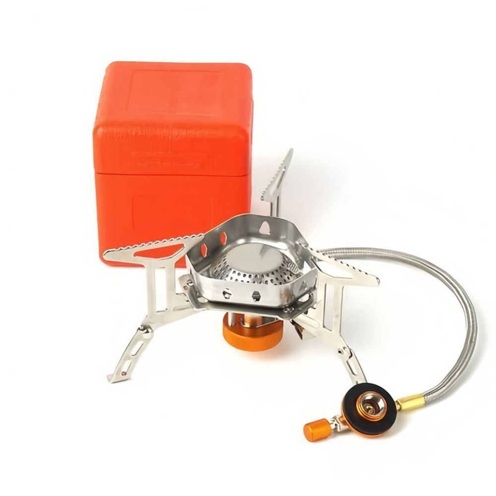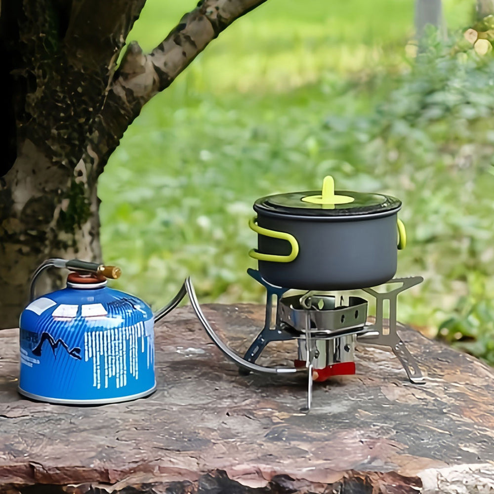 Dieser Campingkocher hat eine piezoelektrische Zündung; das Ventil mit eingebauter verdickter Dichtung ist nicht undicht. Mit dem eingebauten Flammenregler können Sie die Flamme an Ihre Bedürfnisse anpassen.