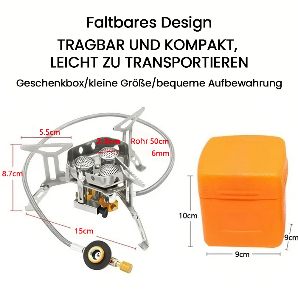 - Der verstellbare Drehknopf hilft, die Flammenintensität zu kontrollieren und Brennstoffe zu sparen.