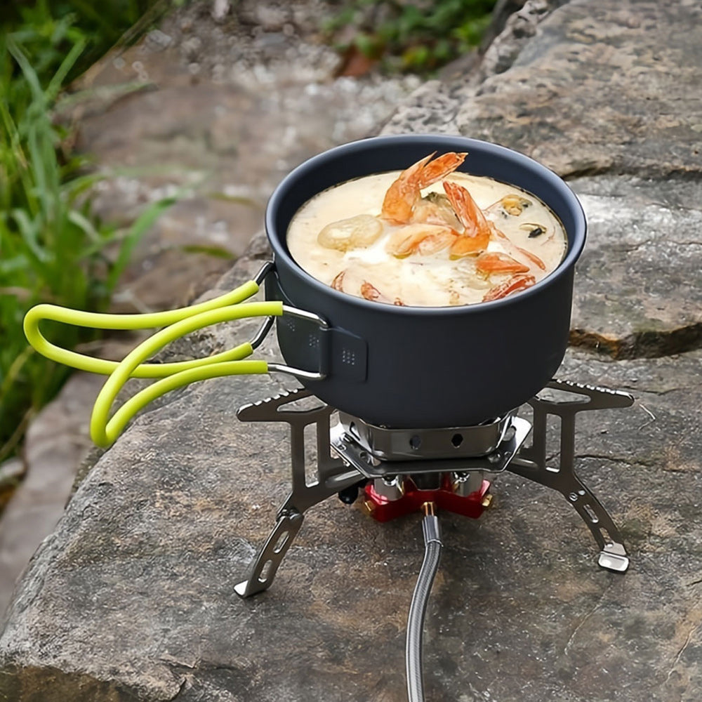 Dieser Camping-Zubehör-Gasherd ist aus Aluminiumlegierung und Edelstahl gefertigt. Verhindert Kratzer und Korrosion. Hat rutschfeste Zähne. Er ist robust und kann hohe Temperaturen aushalten.