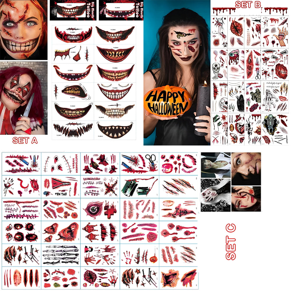 •  1/3 Set x Halloween Streich Make-up Temporäre Tätowierung
